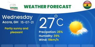 Ghana Weather forecast, alerts and UVB index, Thursday 15 July 2021