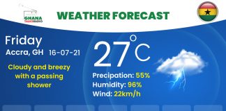 Ghana Weather forecast, alerts and UVB index, Friday 16 July 2021