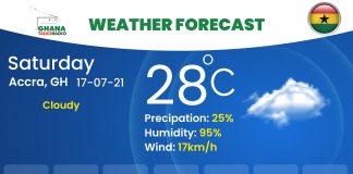Ghana Weather forecast, alerts and UVB index, Saturday 17 July 2021