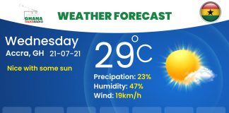 Ghana Weather forecast, alerts and UVB index, Wednesday 21 July 2021