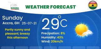 Ghana Weather forecast, alerts and UVB index, Sunday 25 July 2021
