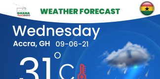 Ghana Weather forecast, alerts and UVB index, Wednesday 09 June 2021