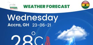 Ghana Weather forecast, alerts and UVB index, Wednesday 23 June 2021