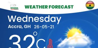 Ghana Weather forecast, alerts and UVB index, Wednesday 26 May 2021