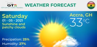 Ghana Weather forecast, alerts and UVB index, Saturday 01 May 2021