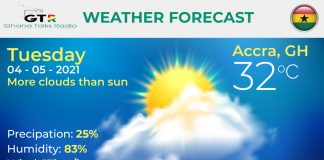 Ghana Weather forecast, alerts and UVB index, Tuesday 04 May 2021