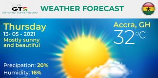 Ghana Weather forecast, alerts and UVB index, Thursday 13 May 2021