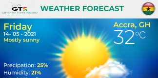 Ghana Weather forecast, alerts and UVB index, Friday 14 May 2021