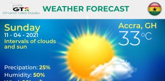 Ghana Weather forecast, alerts and UVB index, Sunday 11 April 2021