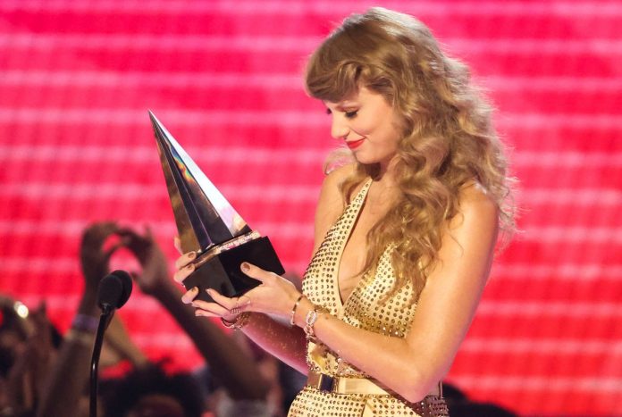 The “Anti-Hero” singer, wearing a sparkling gold jumpsuit, said fan support in recent years had encouraged her to write more music, which made her happier.
