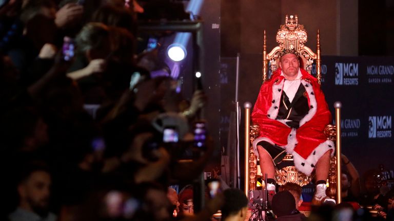 Fury, dubbed the “Gypsy King”, entered the arena held aloft on a throne by handlers, a royal robe around his shoulders and a crown on his head as the song Crazy by Patsy Cline played.