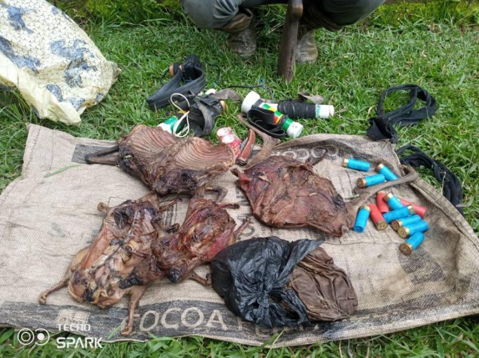 These items were believed to have been used in and resulted from illegal hunting activities in the forest.
