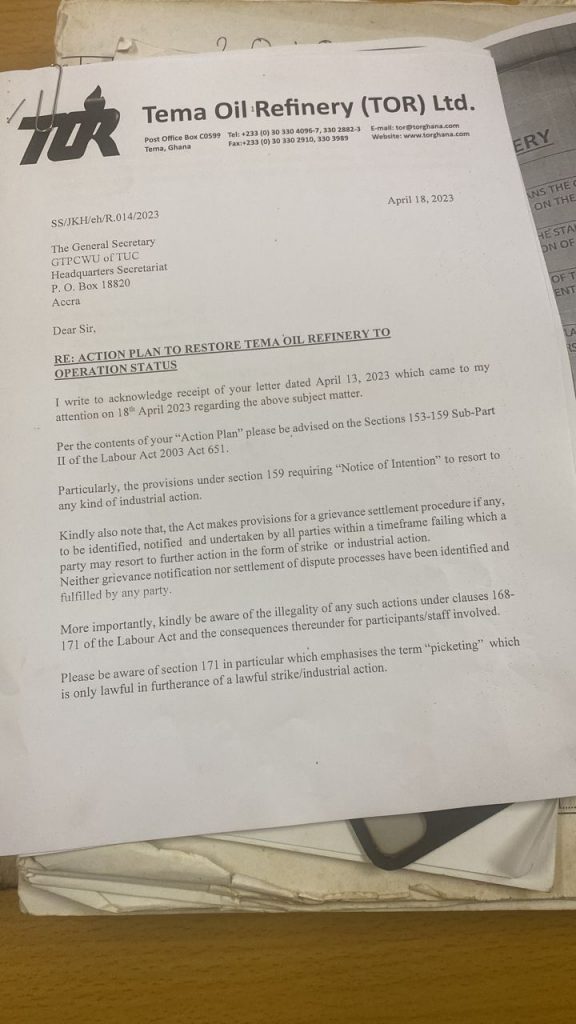 The General Transport Petroleum Chemical Workers Union (GTPCWU) on Tuesday, April 18 announced its intention to embark on a series of actions in support of its call for the revamping of TOR.