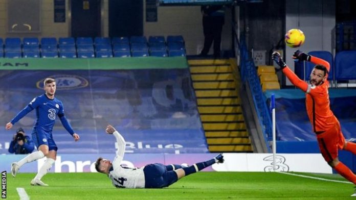 Edouard Mendy kept out Serge Aurier’s ferocious strike while Steven Bergwijn scooped another Spurs chance over the bar.