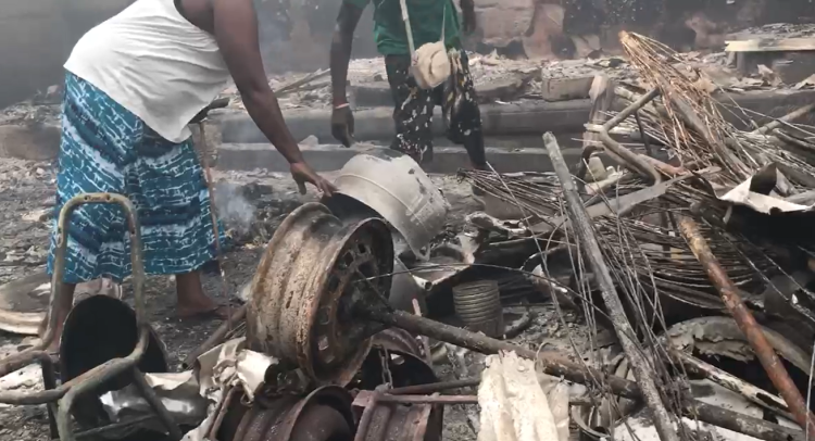 Isabella Apoe, a cold store operator, was seen trying to gather the remnants of her burnt shop. She, too, expressed the magnitude of her loss, saying she had lost millions to the fire.