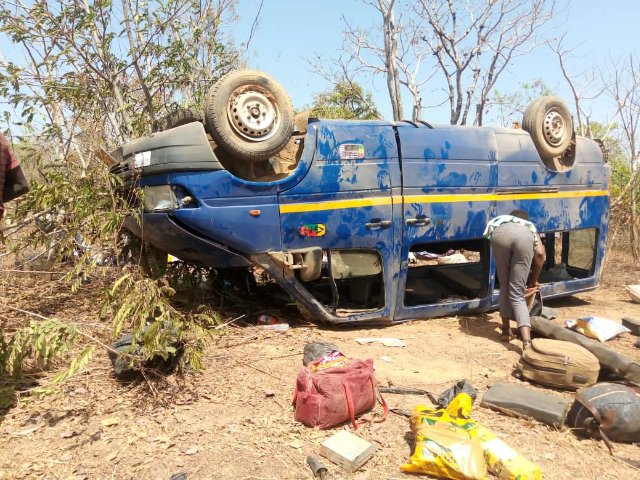 According to eyewitnesses, the 20-seater Mercedes Benz vehicle was headed for Wa from Tamale when one of its tyres removed, causing the vehicle to somersault several times killing the student and leaving 17 others injured.