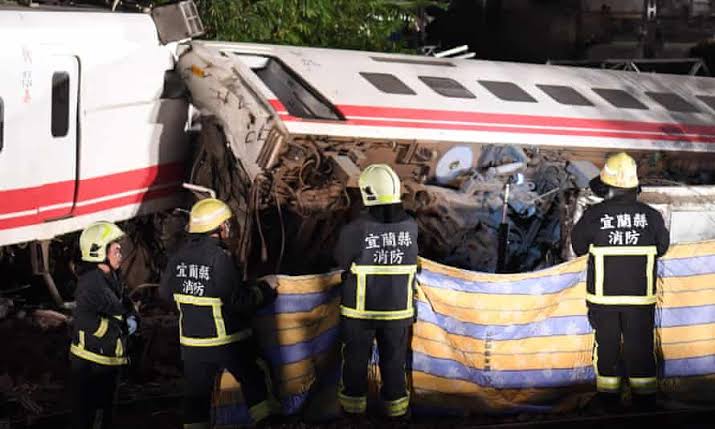 The train, an express travelling from Taipei to Taitung carrying many tourists at the start of a long weekend, came off the rails north of Hualien in eastern Taiwan, the fire department said.