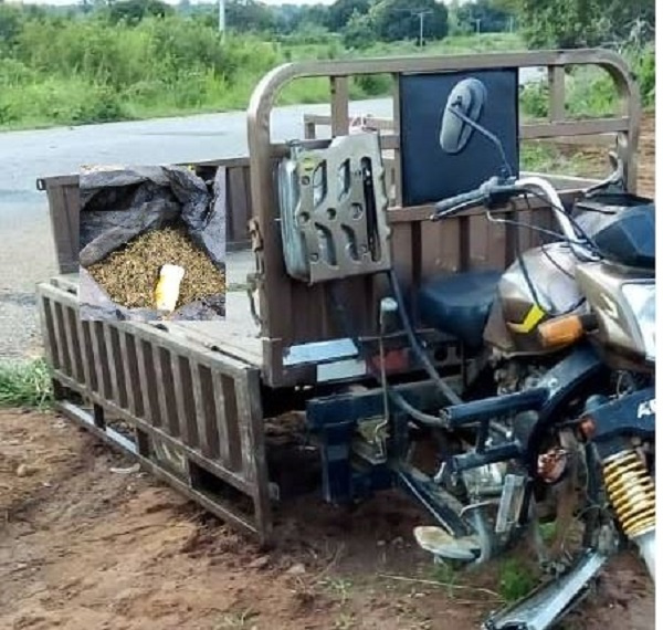 A group of young men who were transporting Marijuana to an unknown destination were exposed after a car rammed into their faulty tricycle at Wenchi in the Bono Region.