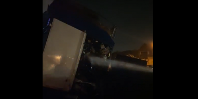 A truck loaded with spare parts caught fire on the Tema Motorway, leading to severe traffic congestion.