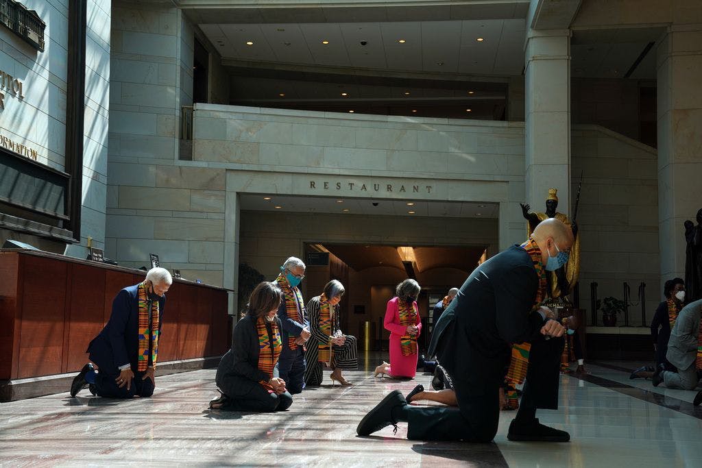 Democrats knelt in silent tribute to George Floyd in the US Congress on Monday before unveiling a package of sweeping police reforms in response to the killing of African Americans by law enforcement.