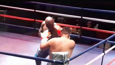 Banku went in for the kill in the third round, with some wild punches. He backed Albert into a corner, landing some headshot which landed the younger fighter on the canvas.