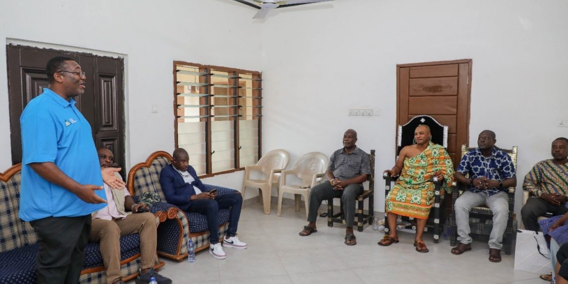 As part of the visit, Ing. Arthur also paid a courtesy call on Torgbe Korsi Nego, the Mankrado of Mepe Traditional Area. He was joined by the North Tongu District Chief Executive, Hon. Osborn Fenu, Deputy Director General (Technical and Reforms) NADMO, Mr Seji-Saji, and Traditional Representatives, among others.
