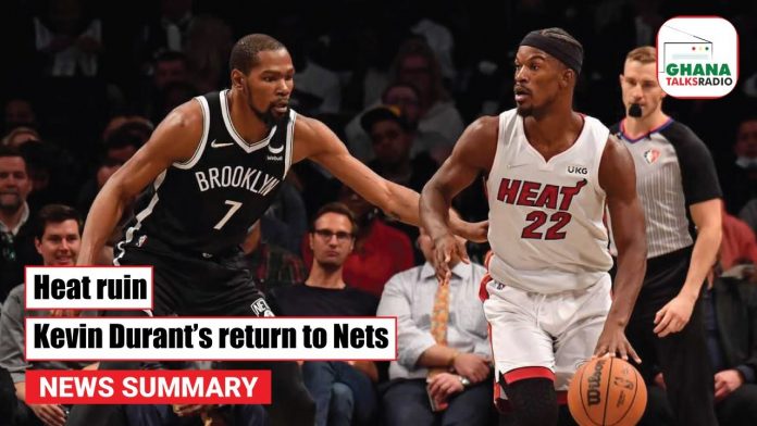 Durant returned from missing 21 games with a sprained MCL in his left knee and scored 31 points for Brooklyn. He hit 10 of 21 shots but missed two in the final minute.
