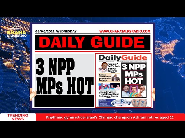 NewsGhana Newspaper [W/E-06/04/22] GTR NEWSPAPER HEADLINES: Muntaka fails to rescue TikTok lady; Nationwide clampdown begins; more 6th April 2022 0 428 Share Facebook Twitter WhatsApp Linkedin Pinterest Telegram Viber Ghana Newspaper Headlines for Wednesday, 6th of April, 2022.