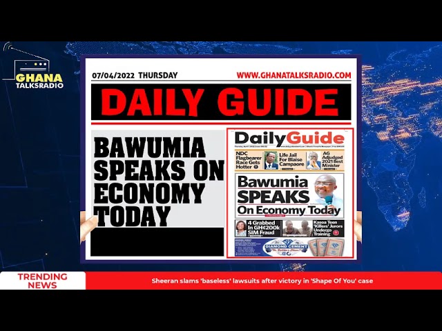 NewsGhana Newspaper [W/E-07/04/22] GTR NEWSPAPER HEADLINES: Cement turf war; Bawumia speaks on economy today; more 7th April 2022 0 402 Share Facebook Twitter WhatsApp Linkedin Pinterest Telegram Viber Ghana Newspaper Headlines for Thursday, 7th of April, 2022.