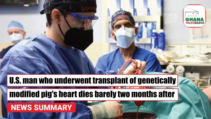 1) U.S. man who underwent transplant of genetically modified pig’s heart dies barely two months after