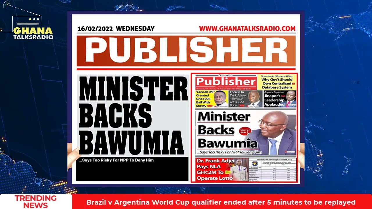 NewsGhana Newspaper [W/E-16/02/22] GTR NEWSPAPER HEADLINES: Back To Lectures, MP GH¢100 Bail, Mill Probe, more 16th February 2022 0 825 Share Facebook Twitter WhatsApp Linkedin Pinterest Telegram Viber Ghana Newspaper Headlines for Wednesday, 16th of February, 2022.