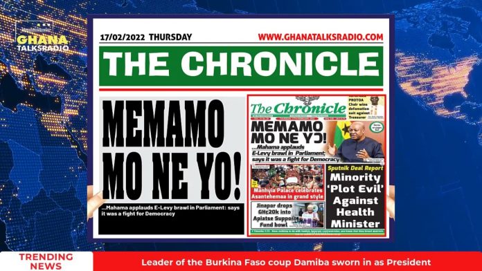 NewsGhana Newspaper [W/E-17/02/22] GTR NEWSPAPER HEADLINES: E-levy Saga; Hunger Data; Vaccine Production; more 17th February 2022 0 342 Share Facebook Twitter WhatsApp Linkedin Pinterest Telegram Viber Ghana Newspaper Headlines for Thursday, 17th of February, 2022.