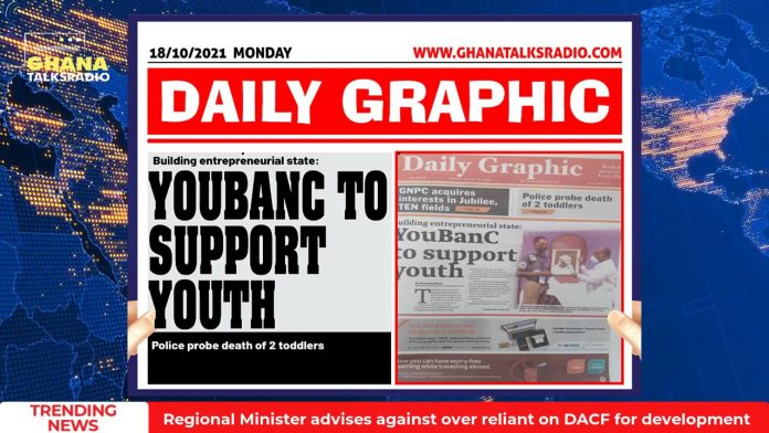 NewsGhana Newspaper [W/E-18/10/21] GTR NEWSPAPER HEADLINES: Togoland, Akufo-Addo, Youbanc, more 18th October 2021 0 335 Share Facebook Twitter WhatsApp Linkedin Pinterest Telegram Viber Ghana Newspaper Headlines for Monday, 18th of October, 2021.
