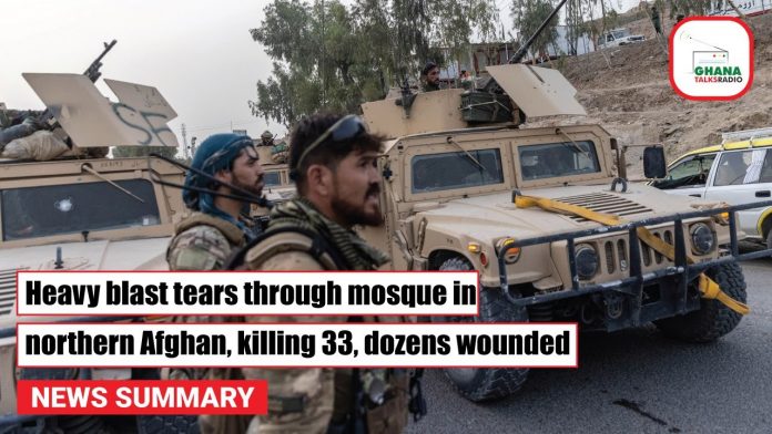 ➡️Heavy blast tears through mosque in northern Afghan, killing 33, dozens wounded