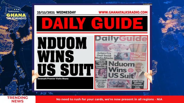 NewsGhana Newspaper [W/E-25/11/21] GTR NEWSPAPER HEADLINES: ‘Mad’ Judges, Pension Laws, 2022 Budget, more 25th November 2021 0 356 Share Facebook Twitter WhatsApp Linkedin Pinterest Telegram Viber Ghana Newspaper Headlines for Thursday, 25th of November, 2021. ‘Mad’ Judges, Pension Laws, 2022 Budget, more…