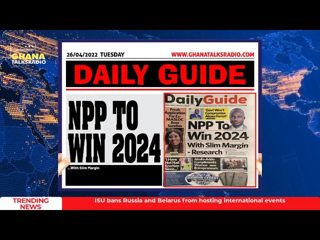 NewsGhana Newspaper [W/E-26/04/22] GTR NEWSPAPER HEADLINES: Govt dismisses Mahama’s claims, more 26th April 2022 0 853 Share Facebook Twitter WhatsApp Linkedin Pinterest Telegram Viber Ghana Newspaper Headlines for Tuesday, 26th of April, 2022.