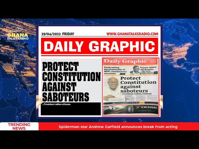 NewsGhana Newspaper [W/E-29/04/22] GTR NEWSPAPER HEADLINES: Democracy good for us, Duffuormania hits NDC, more 29th April 2022 0 621 Share Facebook Twitter WhatsApp Linkedin Pinterest Telegram Viber Ghana Newspaper Headlines for Friday, 29th of April, 2022.