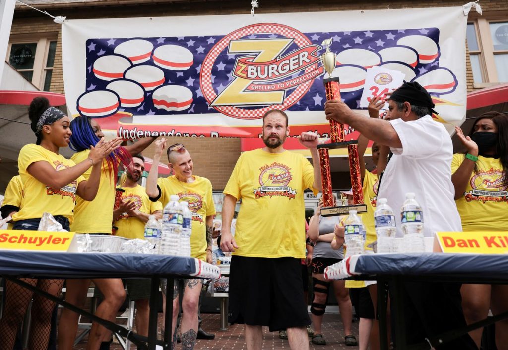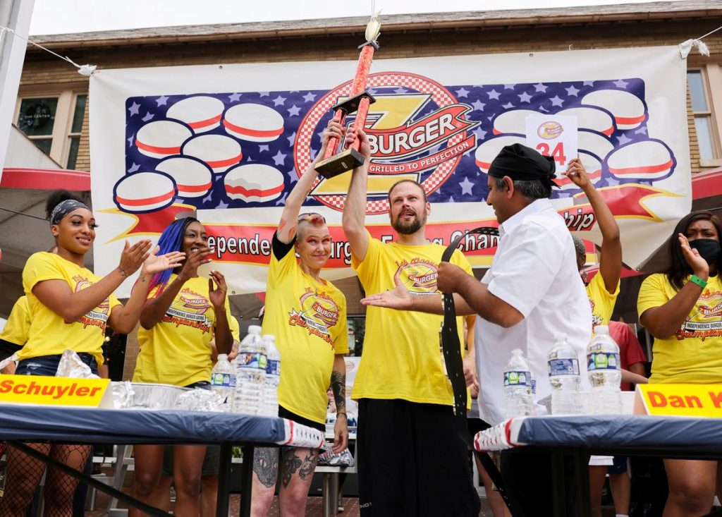 The capital city’s burger eating contest comes ahead of Nathan’s hot dog eating contest in New York on Sunday – the main competitive eating event of the July Fourth holiday.