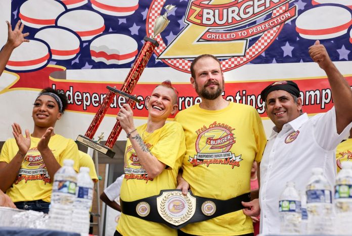The capital city’s burger eating contest comes ahead of Nathan’s hot dog eating contest in New York on Sunday – the main competitive eating event of the July Fourth holiday.