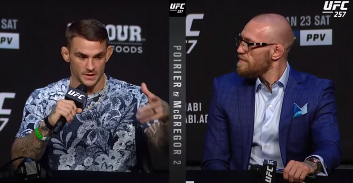 Conor McGregor comes face-to-face with Dustin Poirier at their pre-fight press conference for UFC 257.