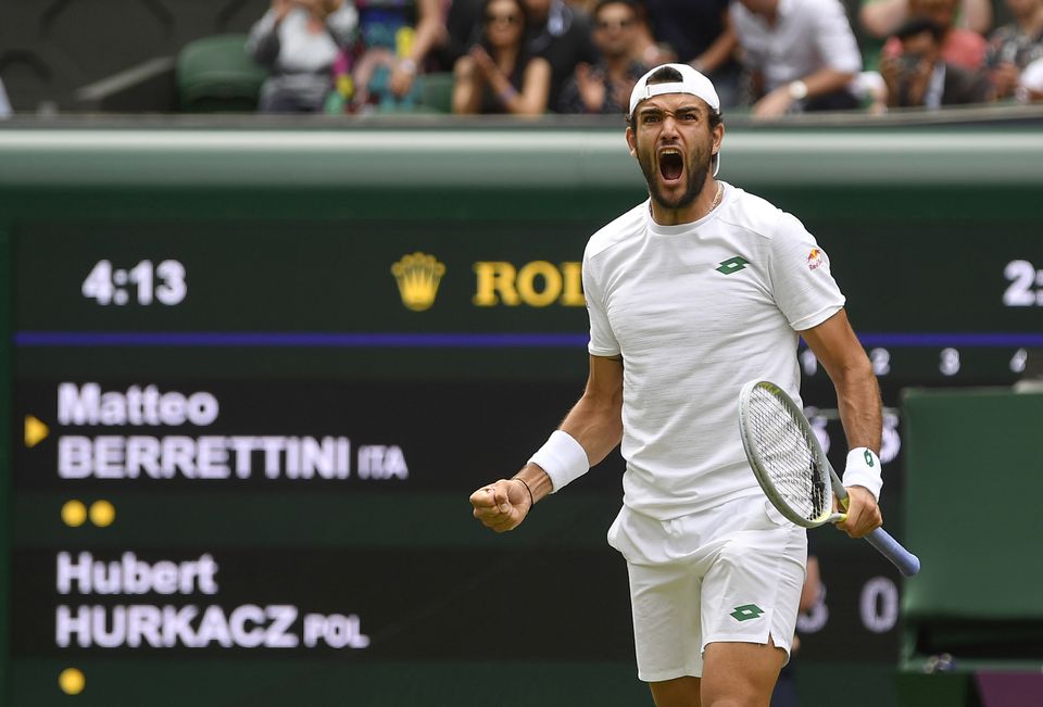 Seventh seed Matteo Berrettini stayed solid in the face of a spirited fightback from Poland’s Hubert Hurkacz to become the first Italian to reach the Wimbledon final on Friday with a 6-3 6-0 6-7(3) 6-4 victory.