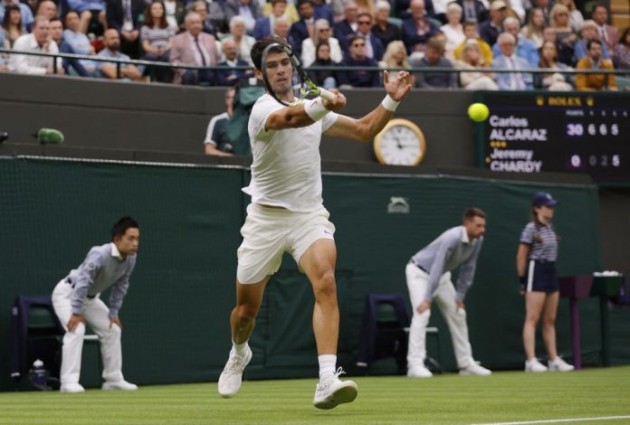 U.S. Open champion Alcaraz, who returned to the top of the ATP rankings after winning the Queen’s Club title on grass last week, blasted through the opening set in 20 minutes as Chardy struggled with a rash of double-faults.