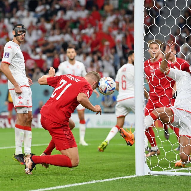 Denmark thought they should have had a penalty in stoppage time for handball that was checked at the VAR screen by referee Cesar Arturo Ramos, but he instead gave a free kick to Tunisia for a foul in the build-up.