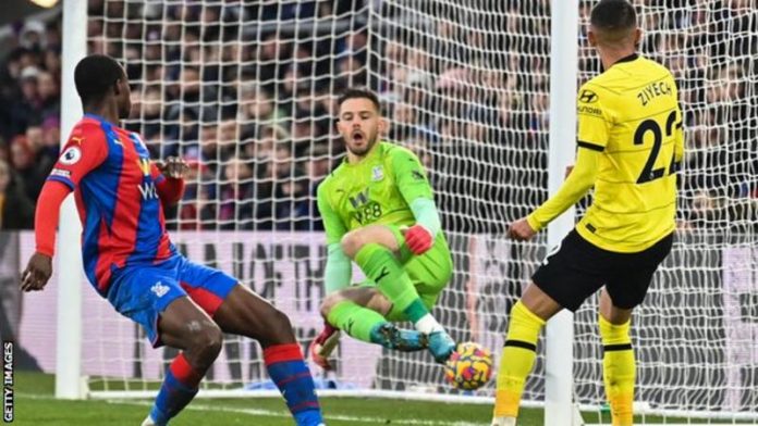 Vicente Guaita had made good saves in the first half from N’Golo Kante’s effort and Antonio Rudiger’s long range thunderbolt, before the Palace goalkeeper was taken off at half-time because of a knee injury.
